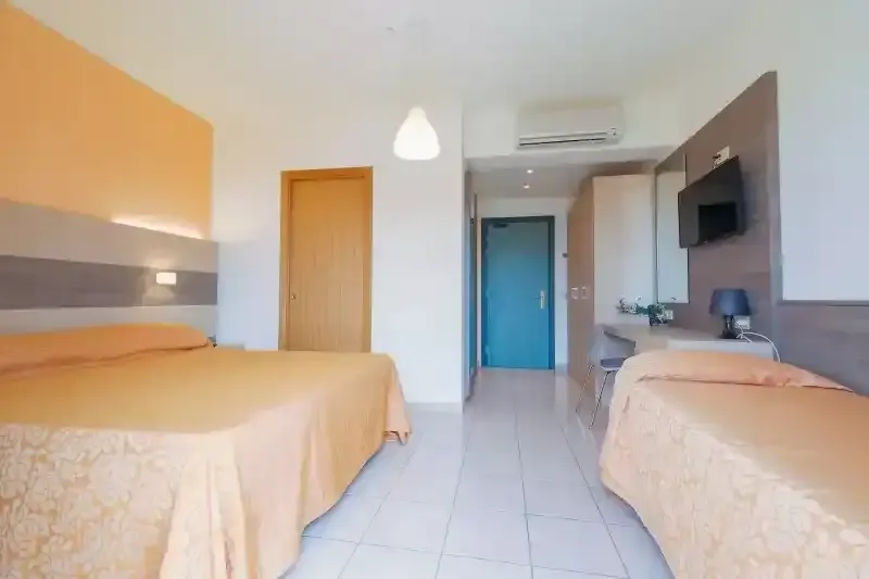 Le 30 camere, tutte con balcone, sono luminose e ben arredate, dotate di aria condizionata, Wi-Fi, TV, cassaforte, minibar e bagno privato con doccia. Sono disponibili soluzioni per coppie, famiglie, gruppi e camere comunicanti.